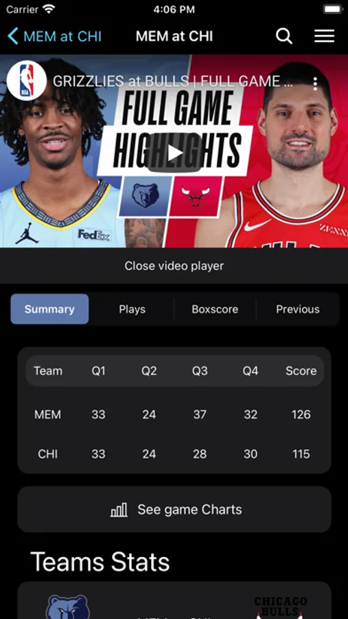 - Watch game highlights, available some minutes after the game has ended
