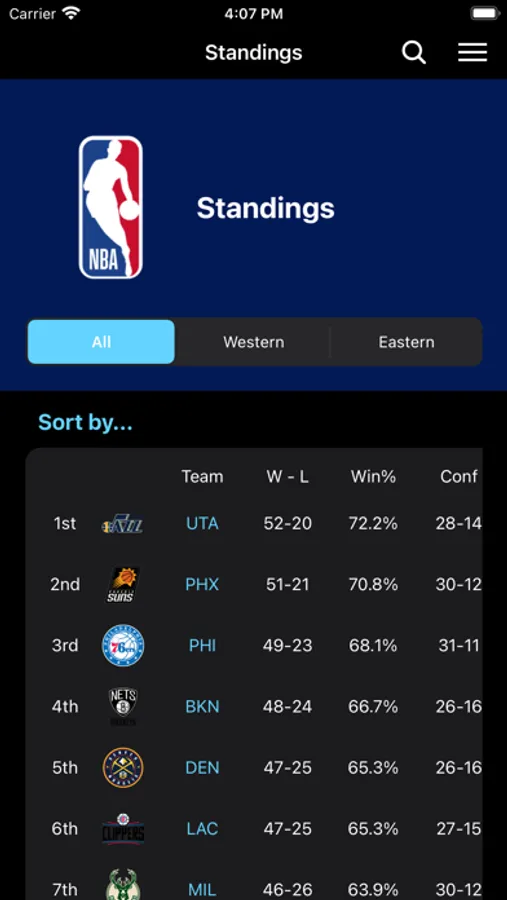 - See what players or teams are leading every day in the leaders tab