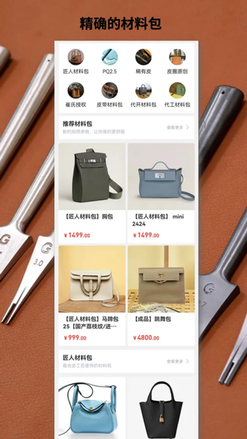 2、皮圈商城通过材料包,让皮友更加节省做包成本。
