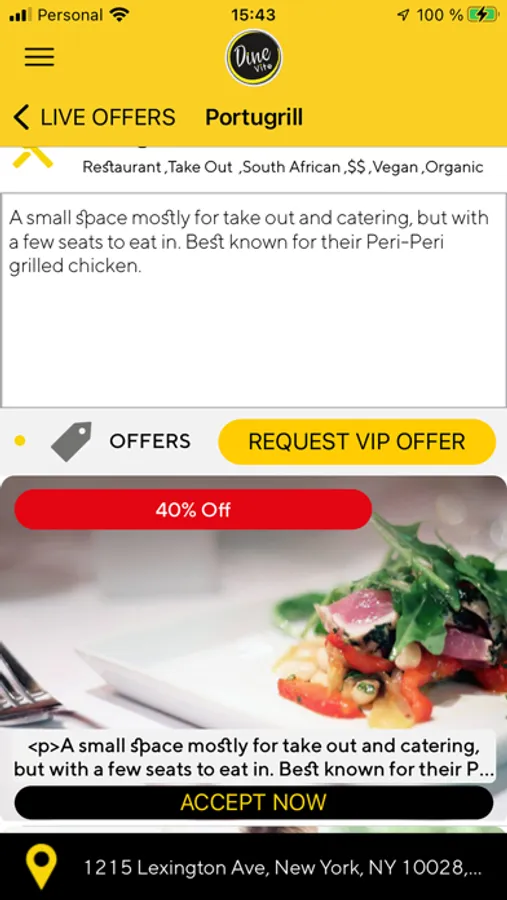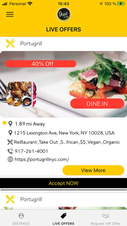 DineVite is the best spot-offer technology available for restaurant-consumer direct interaction. Live public offers, private VIP offers, favorites, wishlists, VIP lists, auto on-premises recognition and notification. With DineVite you’ll be treated like the VIP you are.