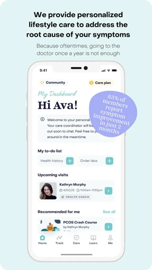 Join for free to chat with a care coordinator, track your symptoms, and empower yourself with knowledge about your condition or join a paid membership for more personalized and intensive care. 83% of members see an improvement in symptoms after just 2 months of use!