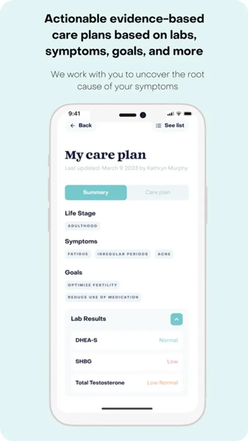 - PERSONALIZED CARE PLAN: Your registered dietitian develops a physician-approved care plan based on your labs, symptoms, life stage, and goals inclusive of lifestyle (e.g., nutrition, exercise, stress, sleep) changes. This is used as a roadmap for the duration of the program and beyond!