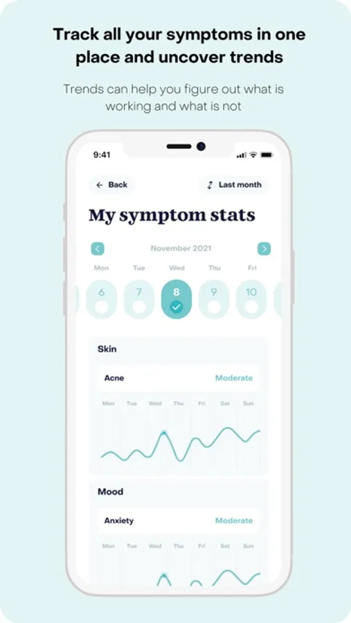 - SYMPTOM TRACKING: Track your symptoms to figure out what is working or not working for your unique body