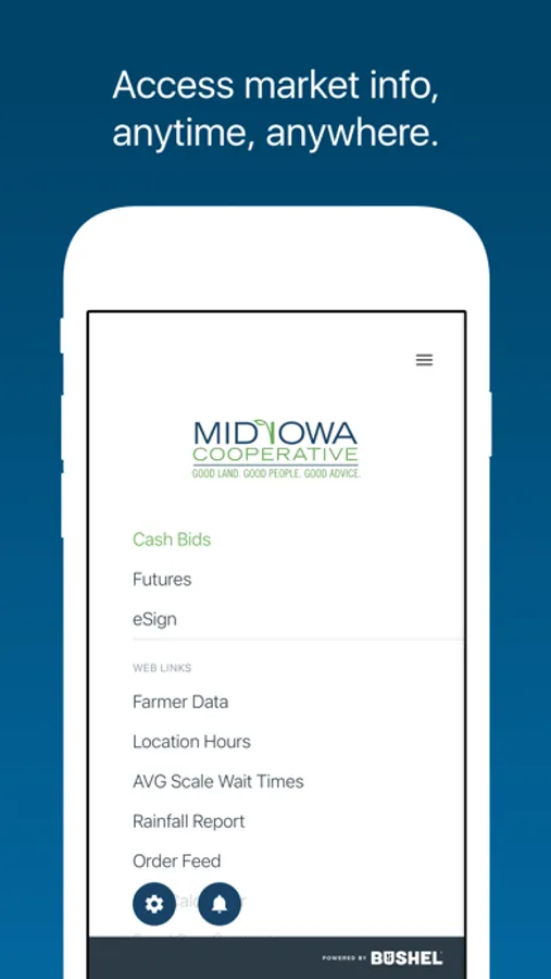 And, our Mid-Iowa Cooperative app is free, secure, and developed by the industry-leading Bushel platform.