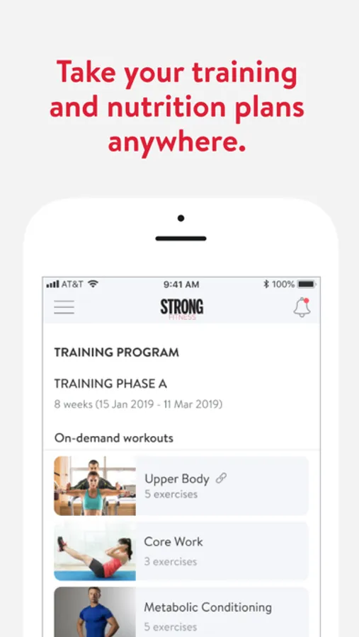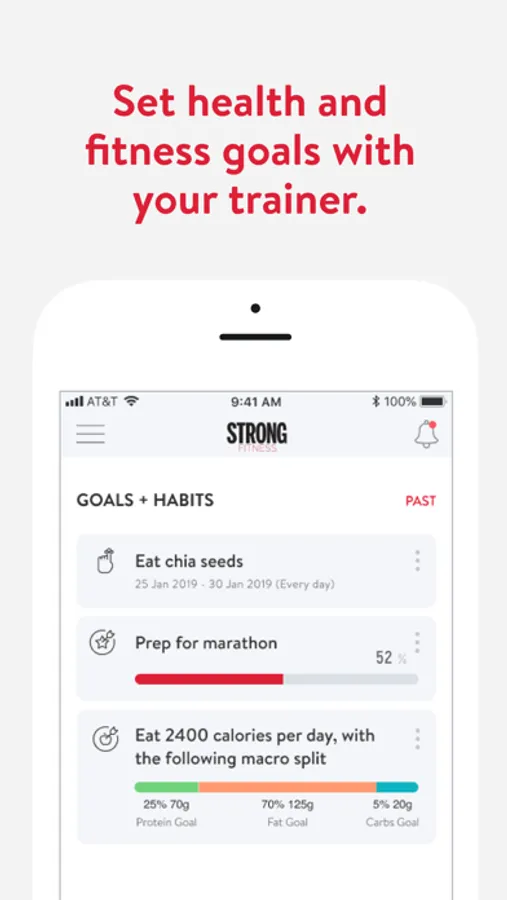 With the STRONG Fitness App, you can start tracking your workouts and meals, measuring results, and achieving your fitness goals, all with the help of your personal trainer.