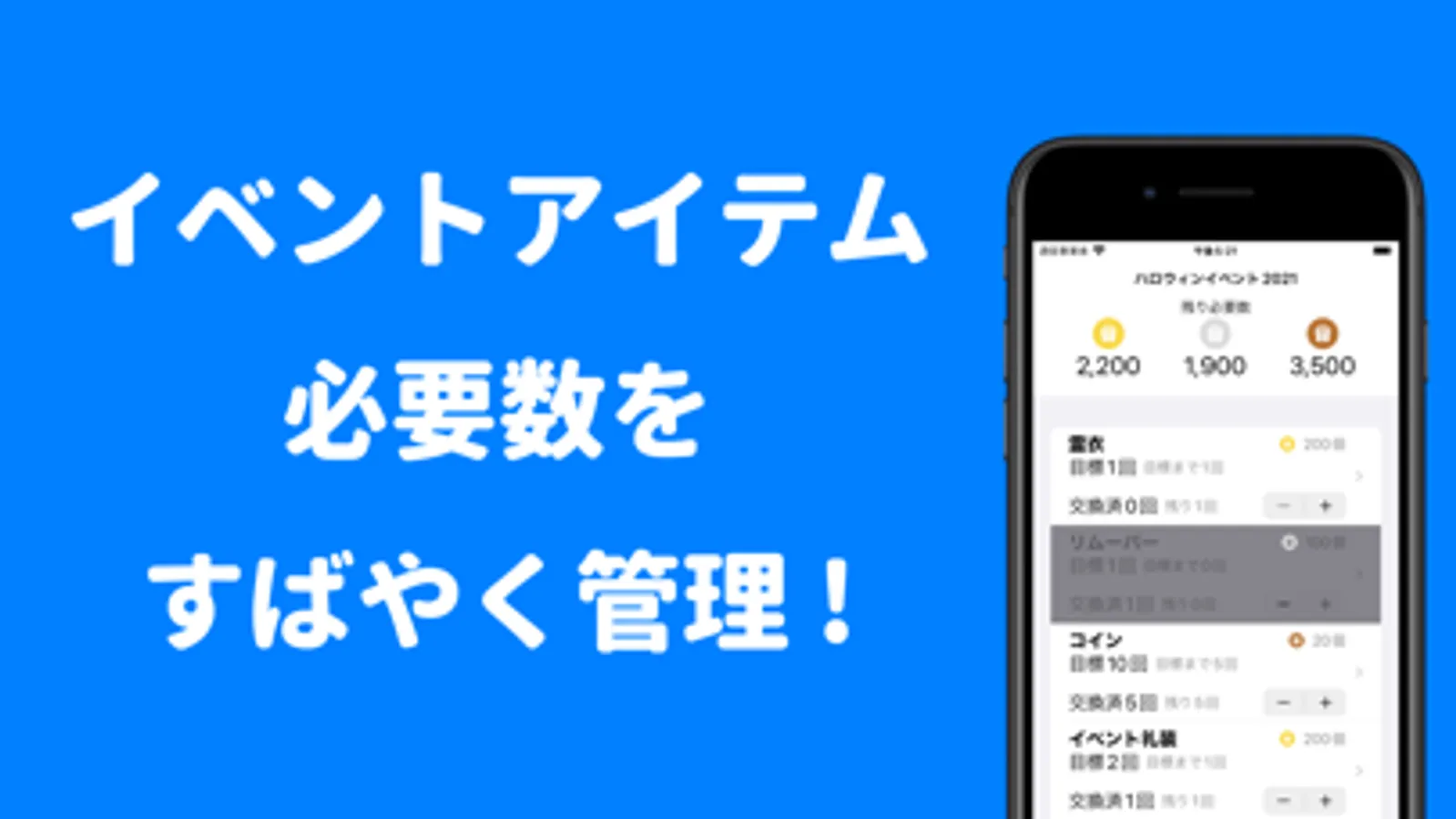 新しいイベントが始まったら、目標の交換回数を設定するだけで、すぐにイベントアイテムの必要数が分かるようになります。