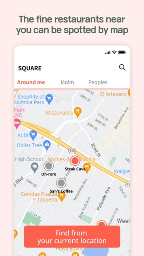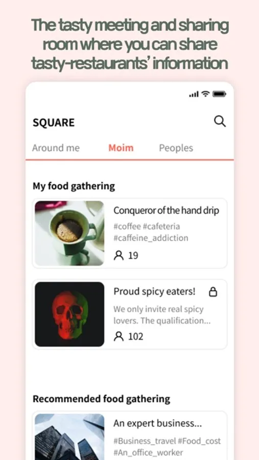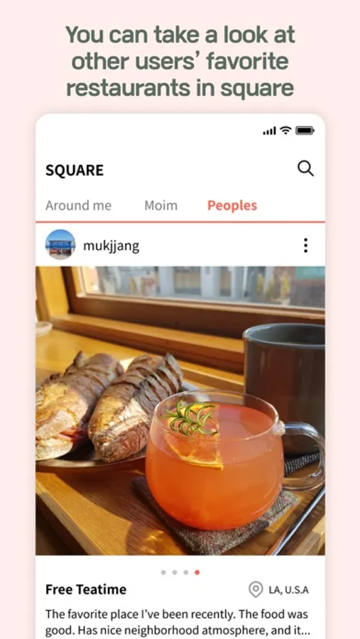 - View other users’ hidden-gem restaurants in square (the tasty nearby restaurant, Tasty meeting, persons)