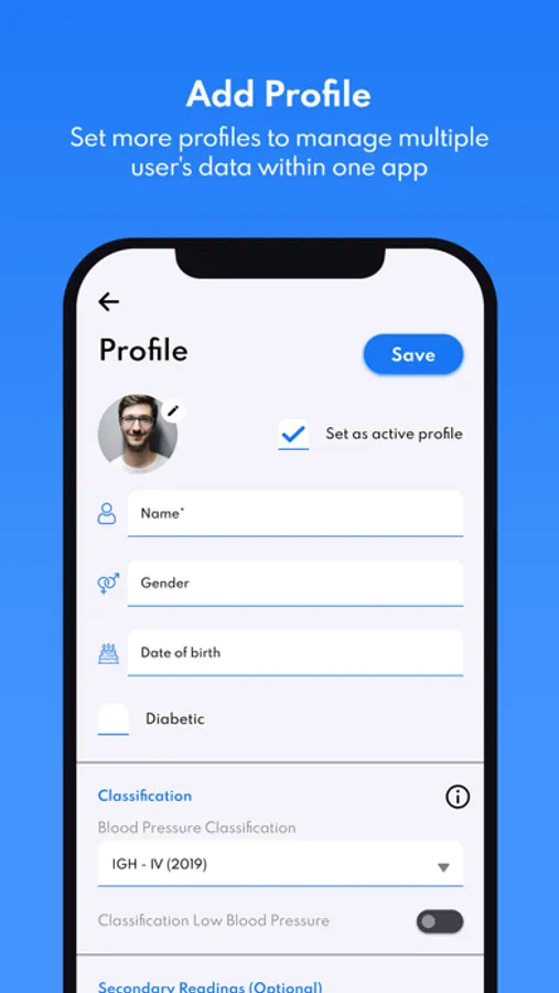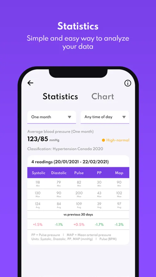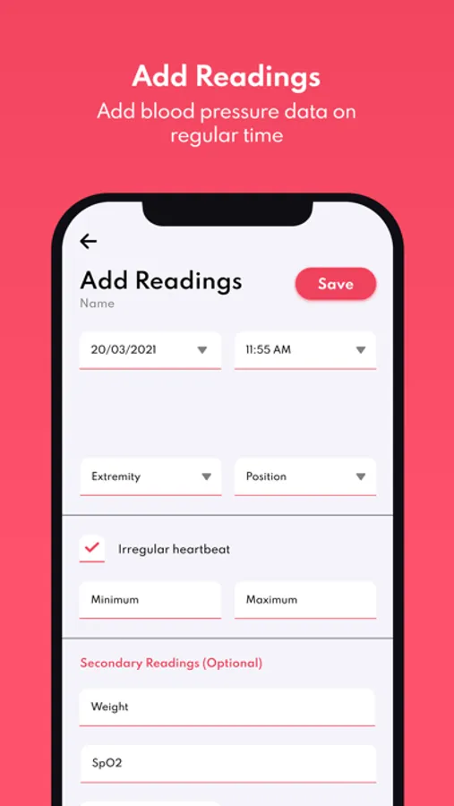 • Blood Pressure - Add your pressure results in
