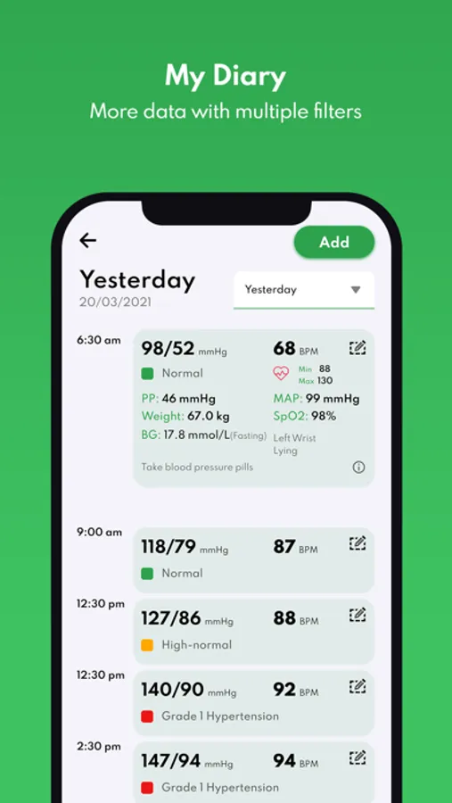 It gives you a better understanding of your Blood Pressure, Blood Sugar & Heart Rate. Helps to foresee any future problems that may arise. You can see if your daily record are fluctuating or maintaining similar pattern of Blood Pressure, Blood Sugar & Heart Rate.