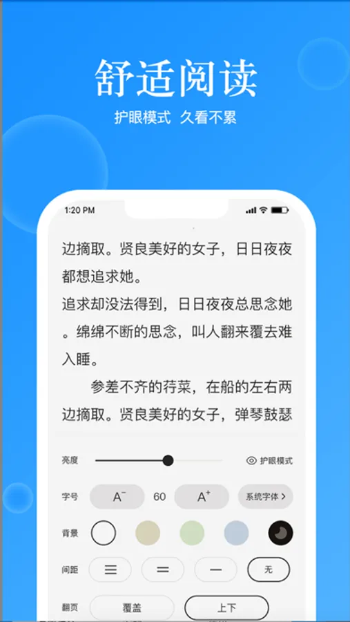 3、养眼易用的阅读界面,支持背景、间距、字号等各种自定义设置,夜间模式很护眼;