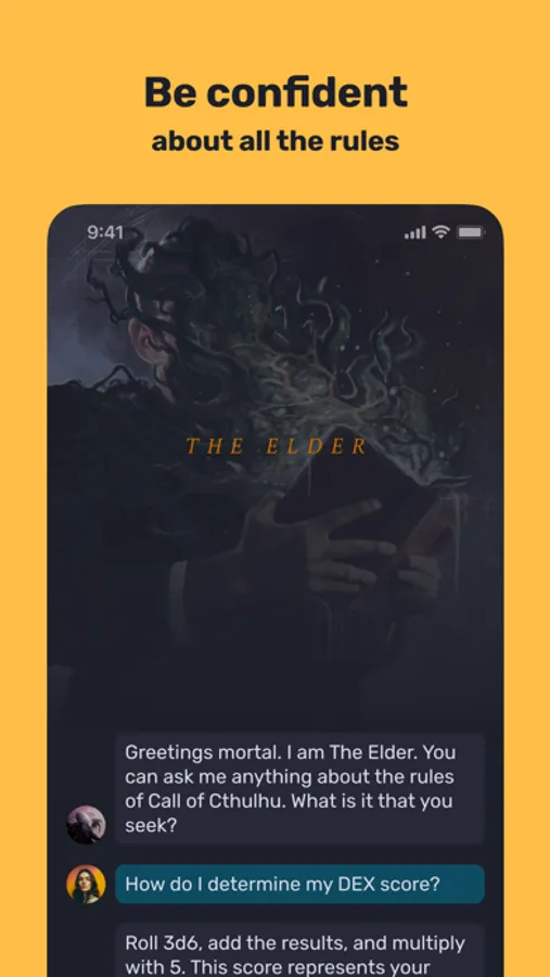 Feel more confident about the rules with Elder, the official Call of Cthulhu AI Assistant. Have an impartial arbiter make rule judgments and even generate NPCs while the players talk.