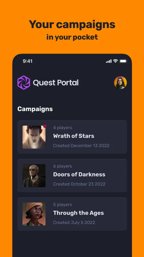 Game Masters create campaigns using the Quest Portal website and invite players to join from the comfort of their mobile phones. So your adventures are never more than a few taps away.