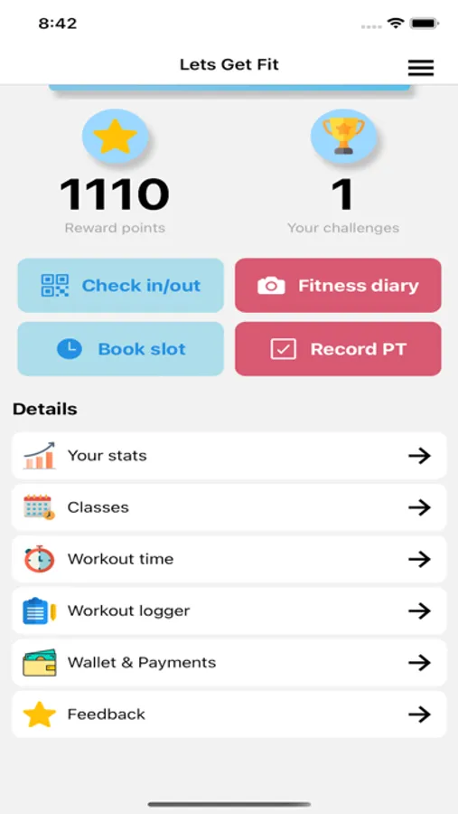 Lets Get Fit app automatically syncs with your studio to give you information about your fitness journey.