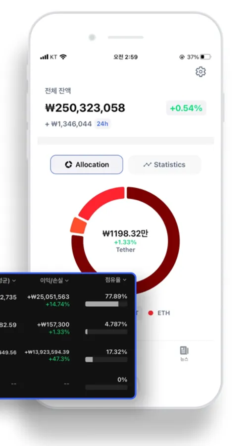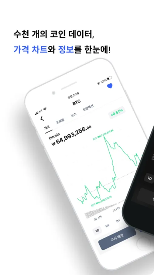 - 수천 개의 코인 가격 차트, 정보, 관련 뉴스 등을 손쉽게 만나보세요!