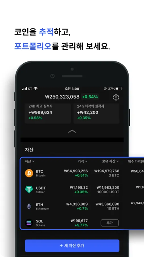 - 무료로 코인을 추적하고, 포트폴리오를 관리해보세요!