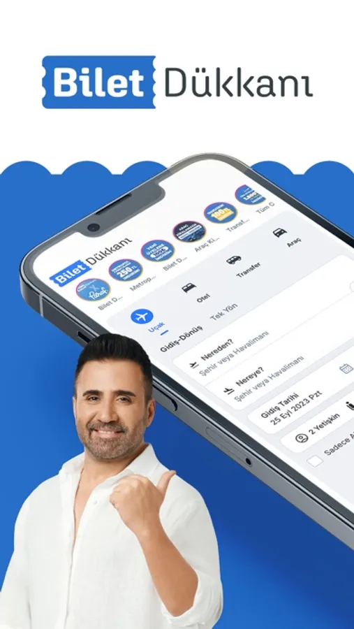 Bilet Dükkanı uygulamasını indirin, fırsatları yakalayın! Facebook, Google, Apple ya da e-posta seçeneği ile üyeliğinizi hızlıca oluşturun, en ucuz uçak bileti, otel, transfer ve araç kiralama hizmetlerinden yararlanın. Kampanyalardan anında haberdar olmak için bildirimlerini açmayı unutmayın!