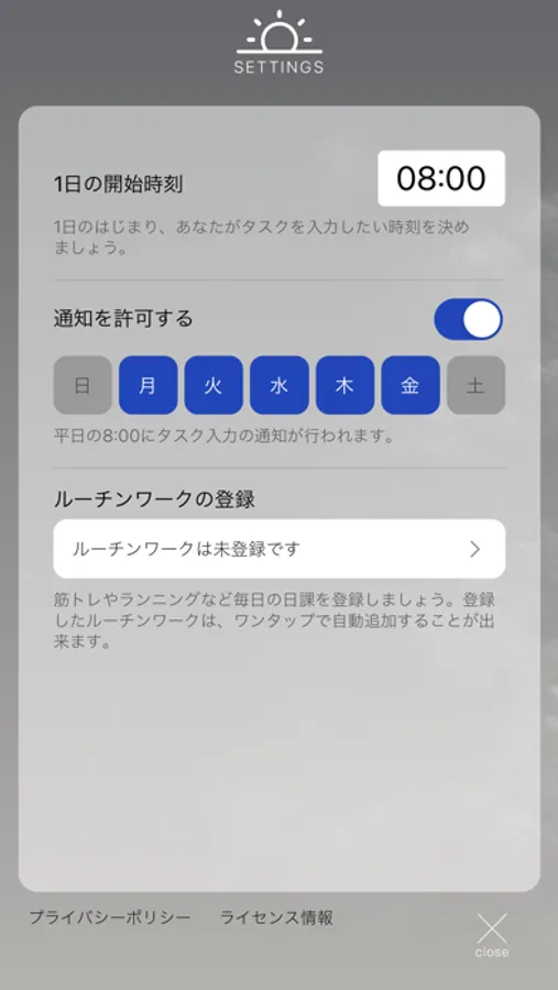 ・1日のはじまりにタスク入力を促す通知を設定できます