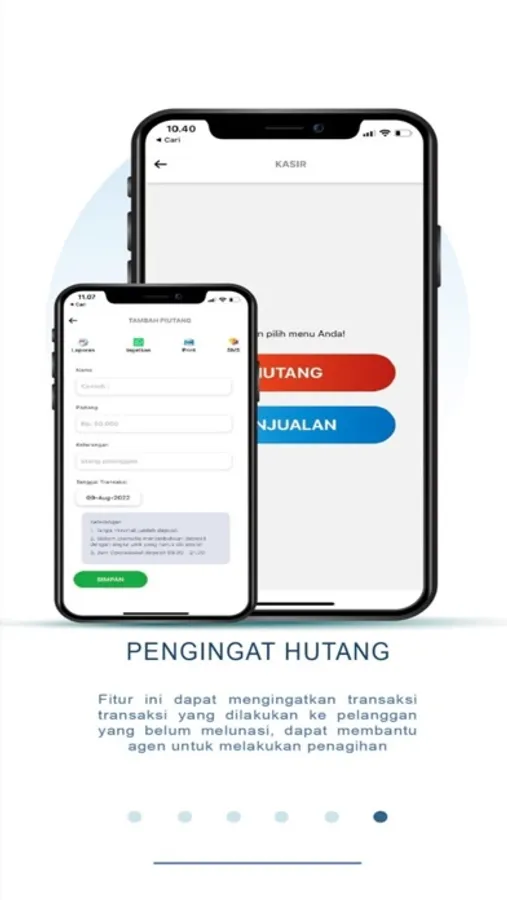 7. Fitur catat hutang dan penjualan. Membantu bagi rekan-rekan pebisnis untuk mencatat laporan penjualan dan hutang yang ada, agar tidak menambah masalah usaha.