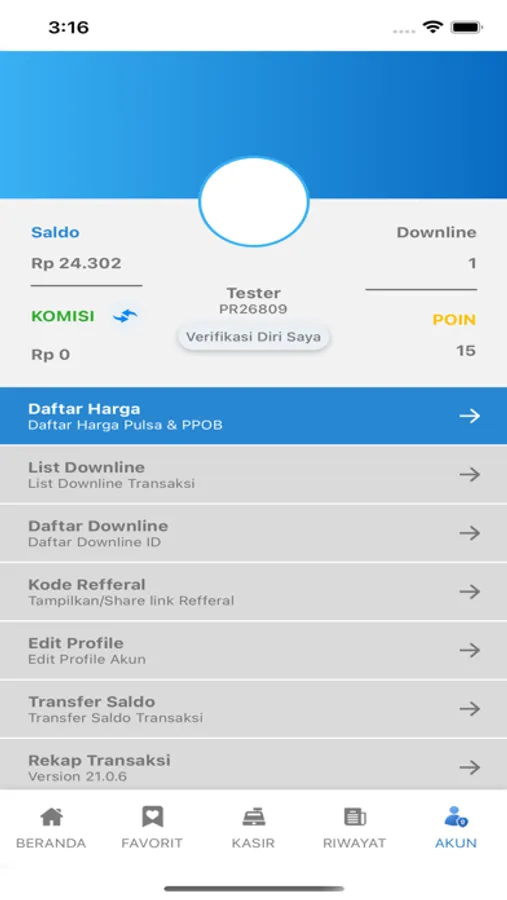 - Lihat agen downline beserta aktivitas transaksi agen downline
