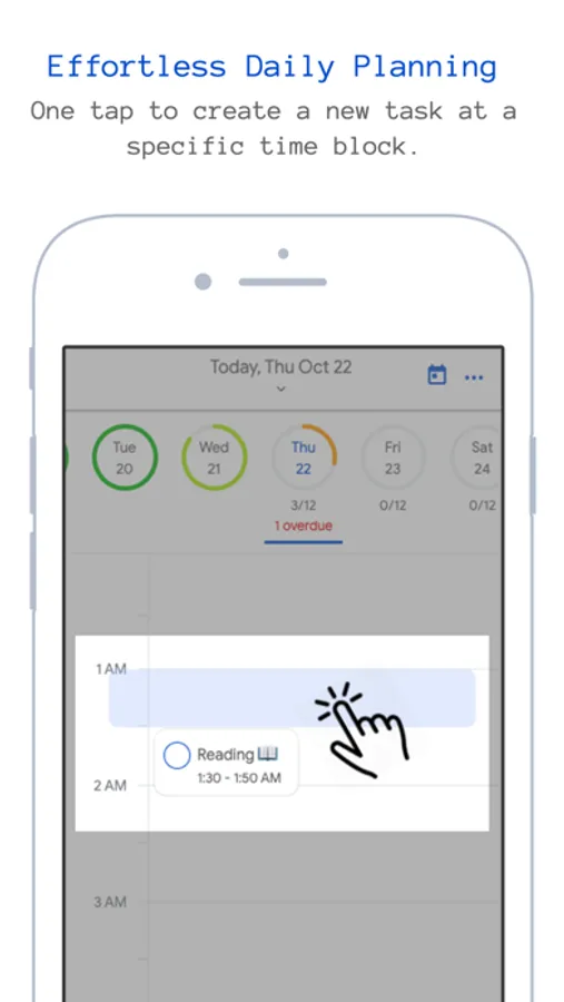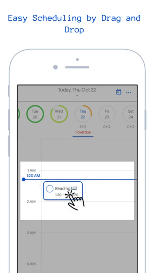 you can view each hour as a horizontal todo list and you can see how tasks overlap especially one time tasks that could overlap with your daily routine tasks, so you can decide what task you are going to reschedule, then that task moves to the corresponding hour's todo list.