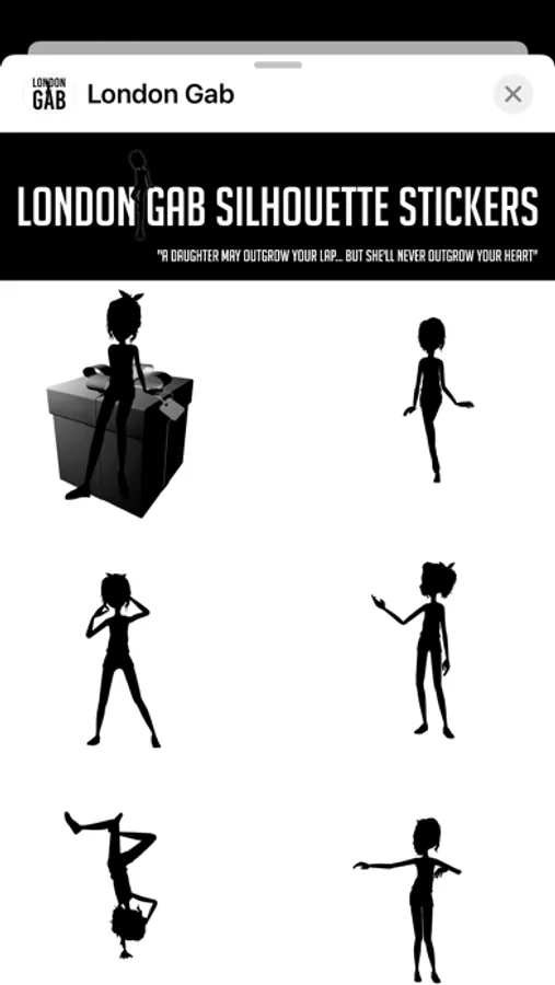 London Gab Silhouette Stickers is filled with animated stickers emotes for conveying all sorts of happiness and emotions with family and friends while texting. This sticker pack is regularly updated to keep current with iOS updates in order to stay fully functional. iMessages will never be the same! Download this pack and watch London Gab dance into your heart!