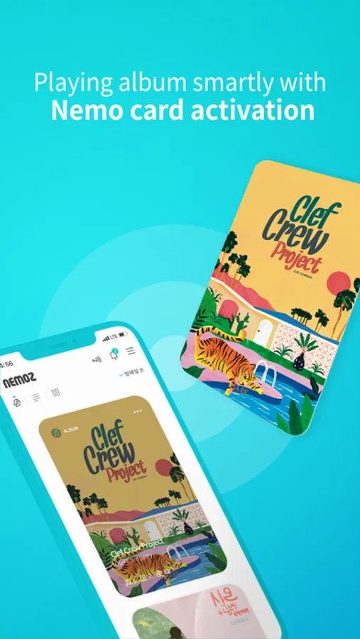 Nemoz is EASY. Install Nemoz App on your smartphone and tag Nemo card. You can enjoy various contents such as music, videos, books, and many more on your own Nemoz space. Nemoz supports 12 different languages to enjoy K-POP and K-contents without language barriers, and pronunciation to sing-along with the original language of the songs.