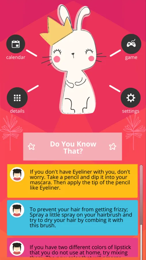 It gives different and entertaining recommendations in menstruation periods.