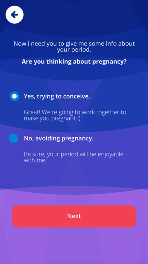 It directs you through its homepage and menstruation calendar if you want to become pregnant.