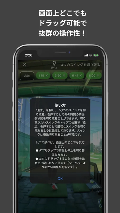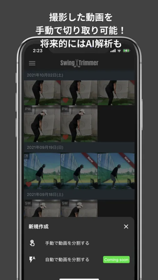 打ちっぱなしや室内練習場で撮った動画を1スイング毎の動画にトリミングするのって大変じゃないですか?