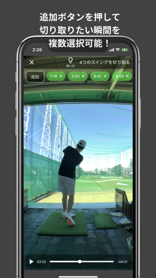 2. 切り取りたいスイングのトップの位置で「追加」ボタンを押す(複数可)