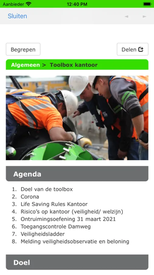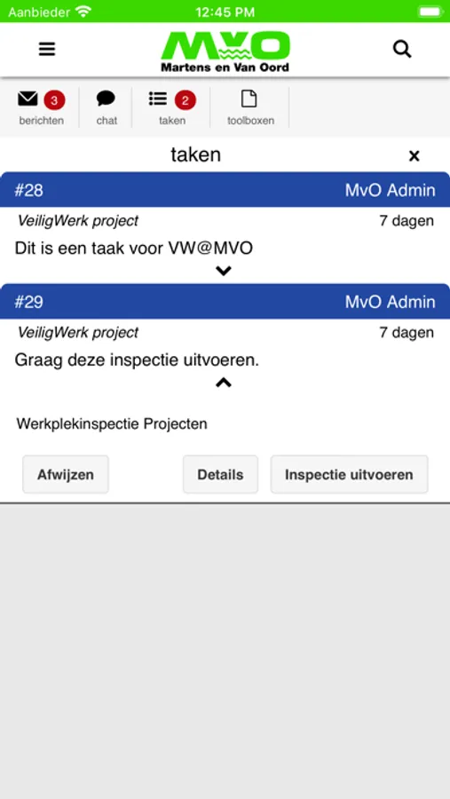 Verder kan iedereen, die samen met MvO werkt, in de app de veiligheidsrichtlijnen, het laatste nieuws, de toolboxen doorlezen en inspecties uitvoeren.