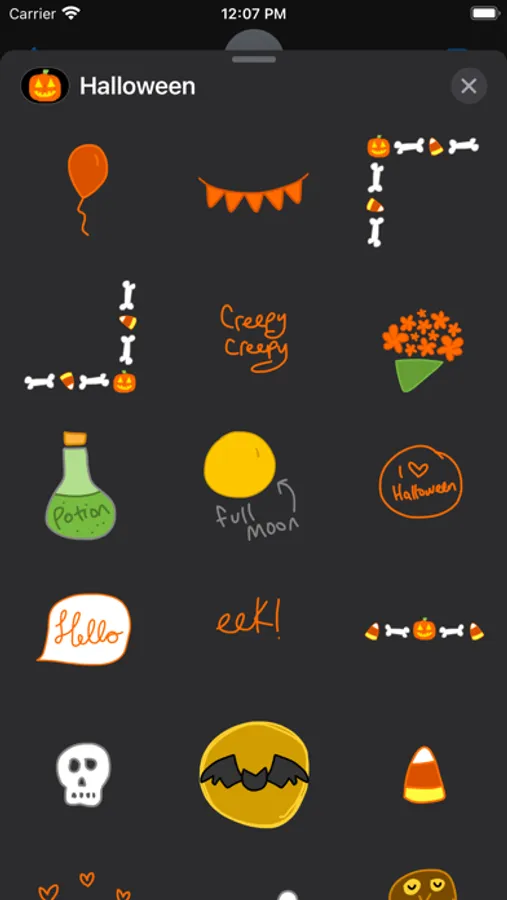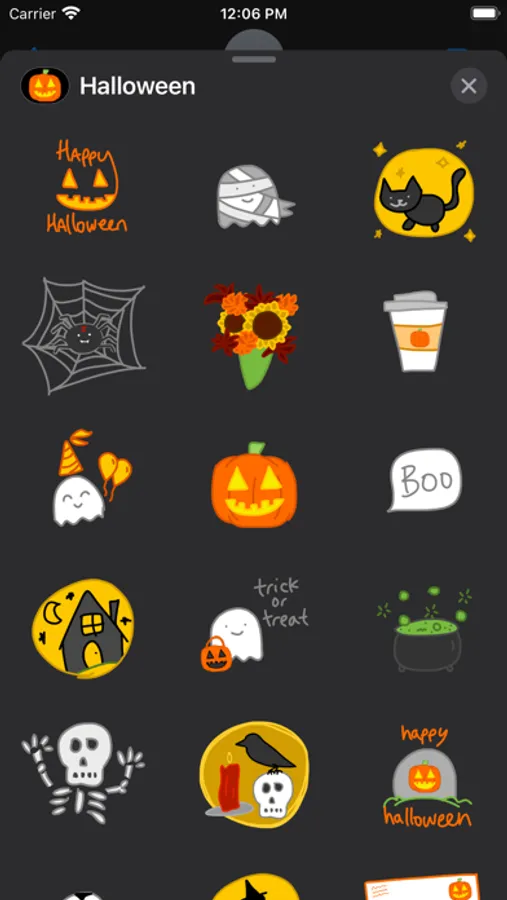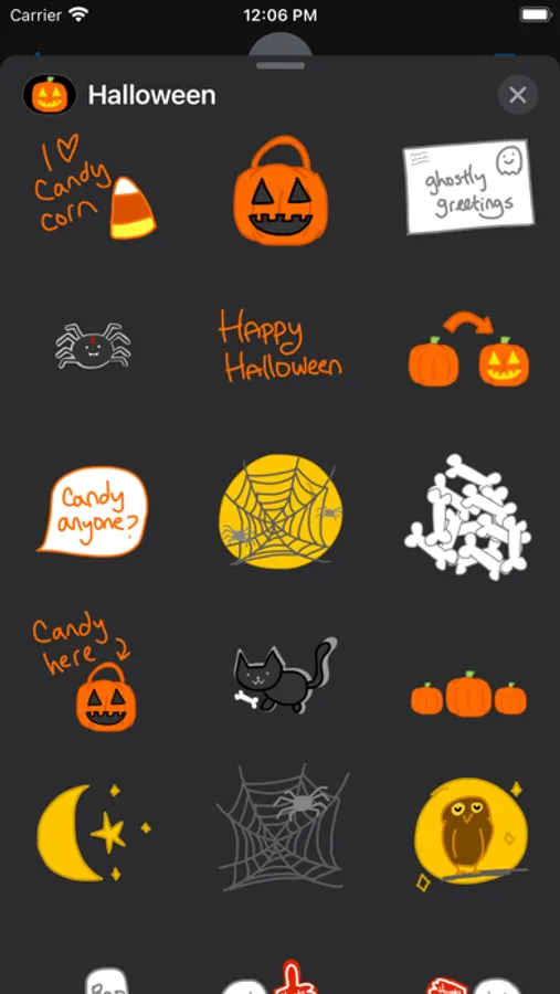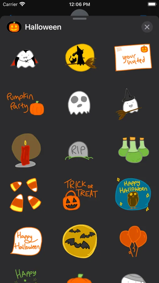 This Halloween themed sticker pack features over 100 artist illustrated stickers for iMessage