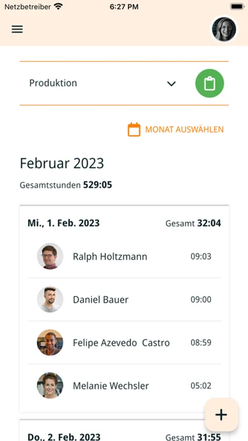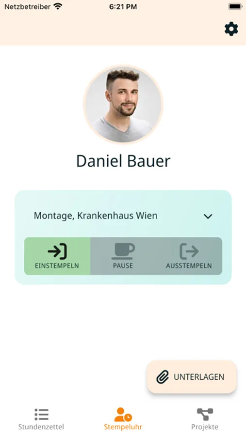 Fast and easy recording of working times and breaks. With just one click, employees can record the start and end of work as well as the start and end of breaks, which enables accurate recording of working hours and simplified billing.
