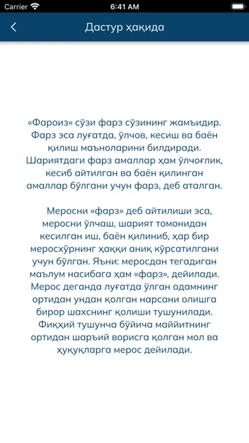Меросни «фарз» деб айтилиши эса, меросни ўлчаш, шарият томонидан кесилган иш, баён қилиниб, ҳар бир меросхўрнинг ҳаққи аниқ кўрсатилгани учун бўлган. Яъни: меросдан тегадиган маълум насибага ҳам «фарз», дейилади. Мерос деганда луғатда ўлган одамнинг ортидан ундан қолган нарсани олишга бирор шахснинг қолиши тушунилади. Фиқҳий тушунча бўйича маййитнинг ортидан шаръий ворисга қолган мол ва ҳуқуқларга мерос дейилади.