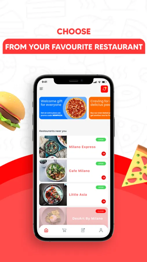 Simply register an account with your name and phone number to place an order and select restaurant, menu, food category, add food item to cart, select checkout, add address, choose payment method, that’s it, order is completed! Plus, get first dips on new promotion and exclusive rewards.