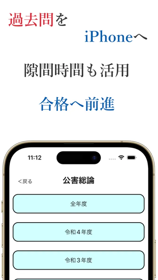 過去問題を iPhoneに入れて持ち歩き、隙間時間も活用できます。