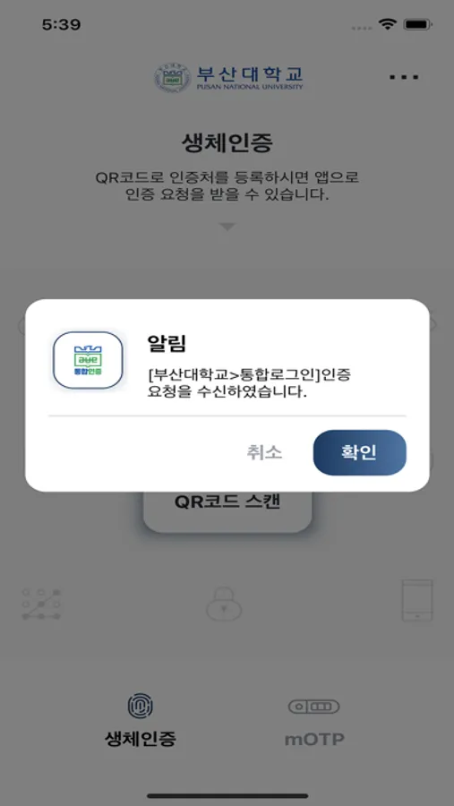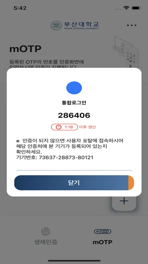 생체인증 및 Mobie OTP 인증 서비스를 제공하는 부산대학교 통합인증앱입니다.