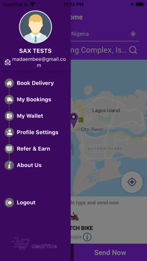 Deal Price is an on - demand delivery / booking App. The App uses geolocation / GPS system to match riders and delivery agents with customers.