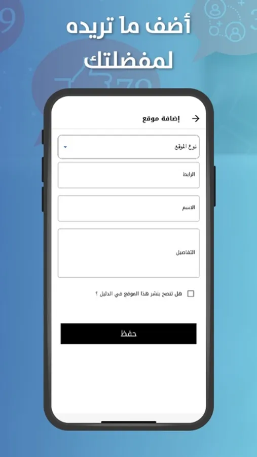 أضف مواقعك وتطبيقاتك وحساباتك المفضلة