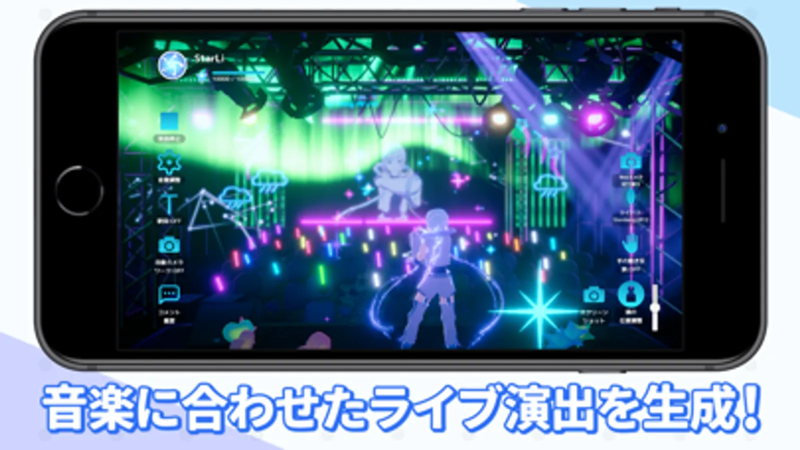 VRMをアップロードして3Dバーチャルライブを楽しむことができます。