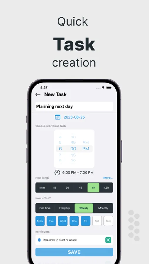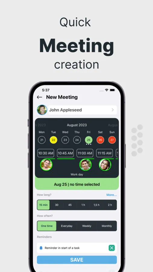 But that's not all, our app also includes a comprehensive reminder system to ensure you never miss an important event or deadline again. From one-time reminders to daily, weekly, and monthly reminders, we have all your scheduling needs covered. Customize the days of the week that work best for you, set reminder times, and even receive notifications before tasks or meetings begin.