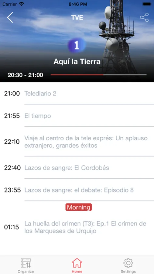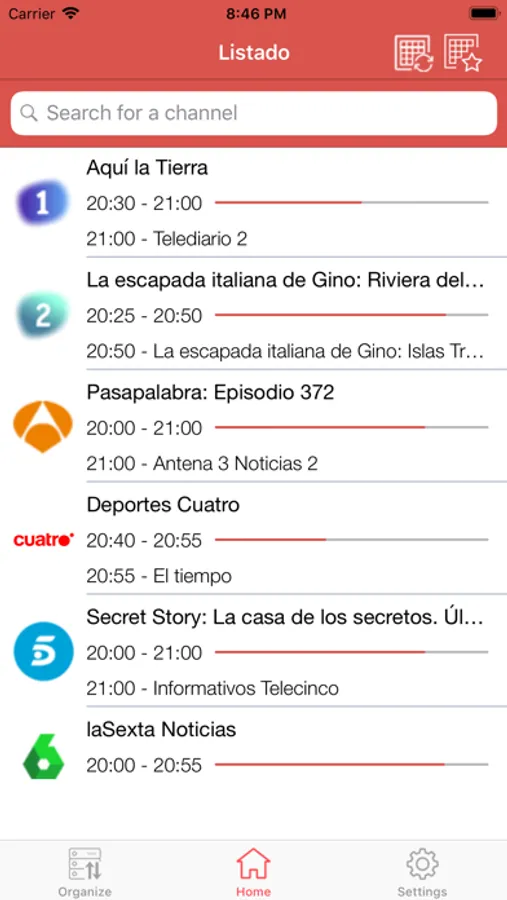 Busca de una manera rápida a que hora retransmite la programación que elijas.