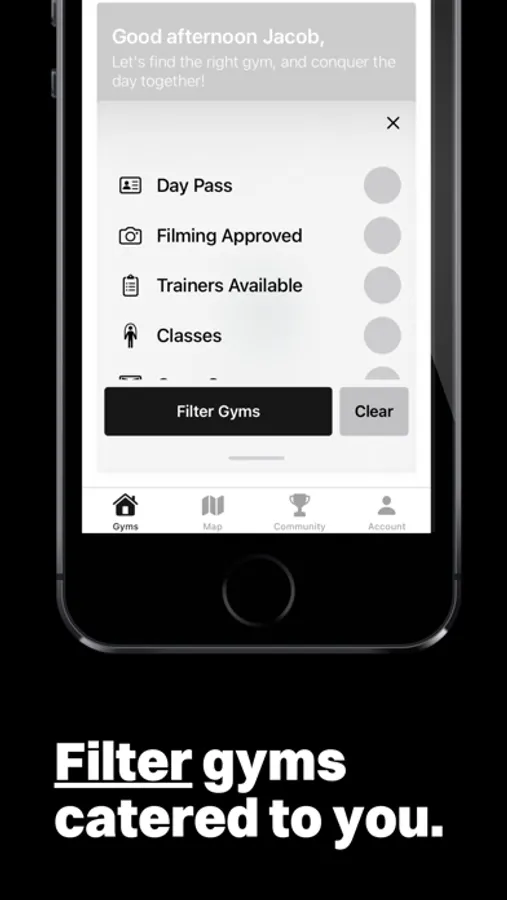 Our app puts the world of fitness at your fingertips with 20+ filtering options to help you choose the right gym for your goals. Whether you're looking for a gym on the go, your next fitness home, or a place to connect with hardworking individuals, we've got you covered. With MoreGyms, you'll be motivated to push yourself to new heights.