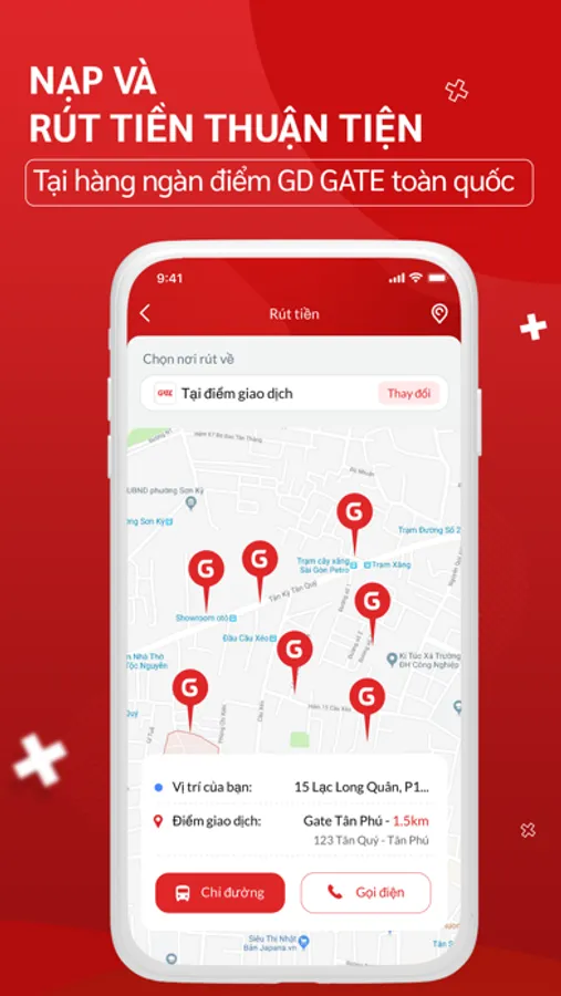 - Nạp và rút tiền tại hàng ngàn điểm giao dịch GATE toàn quốc, nhân viên bán hàng tại địa bàn tỉnh và các đối tác liên kết khác, các chuỗi …