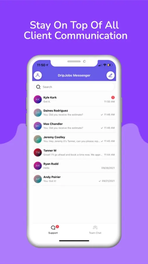 The DripJobs Messenger app is a standalone messaging app to be paired with DripJobs CRM.