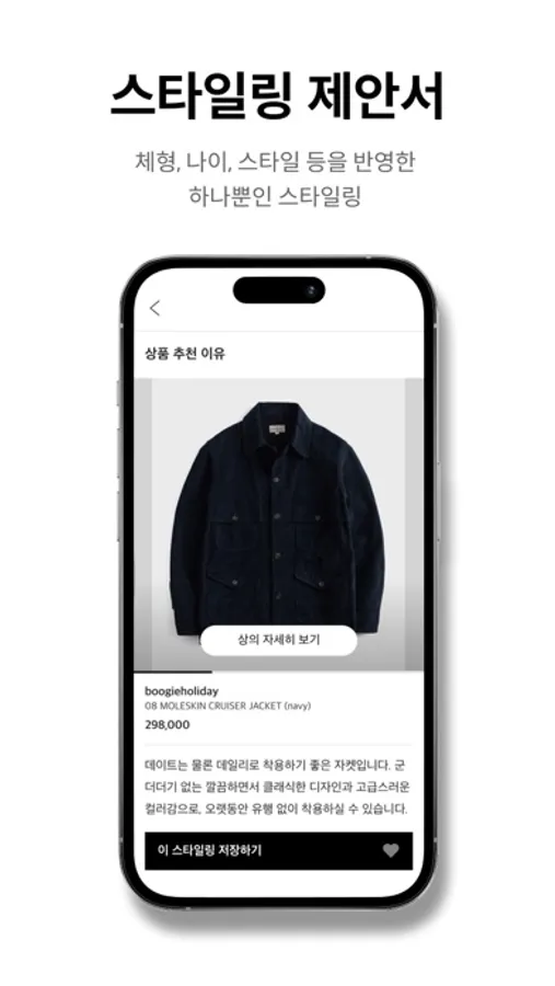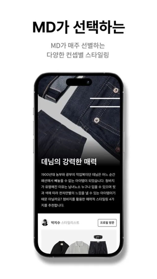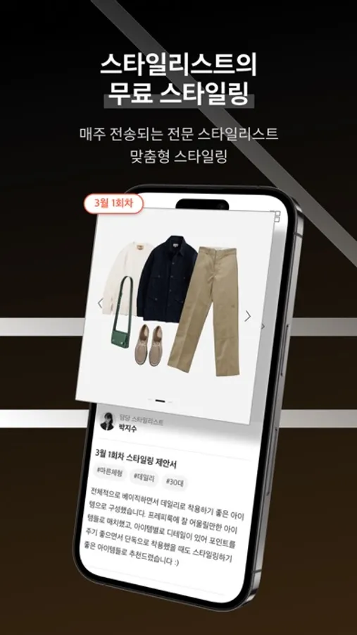 매주 앱 내 전문 스타일리스트가 스타일, 체형 등 개인 스타일 프로필에 맞춰 멋진 스타일링을 무료로 전송합니다.