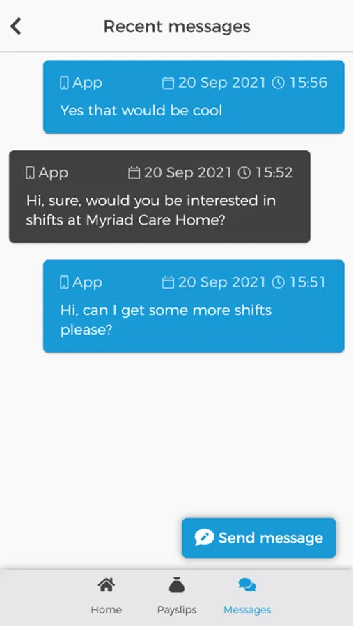 Designed for Care on Call agency casual contract staff working at client sites to get payslips, notifications, send messages and apply for leave.