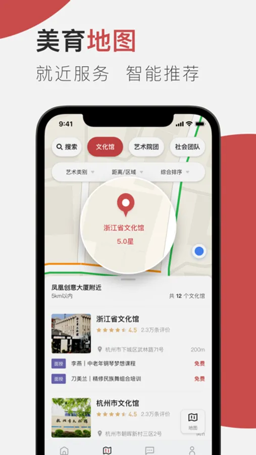 云端美育是由文化和旅游部全国公共文化发展中心联合浙江艺高文化创意有限公司共同打造的全民艺术普及教育服务平台。平台在文化和旅游部全国公共文化发展中心的指导下建设全民艺术普及数字资源总库和师资总库,并通过LBS(地理位置信息服务)模式为全国老百姓提供线上与线下相结合的艺术普及和美育教育服务,以公益化与市场化相结合的运营模式将平台打造成受全民欢迎的公共文化服务平台,让全国老百姓就近享受多元化、高品质、便捷化的艺术普及和美育教育服务。