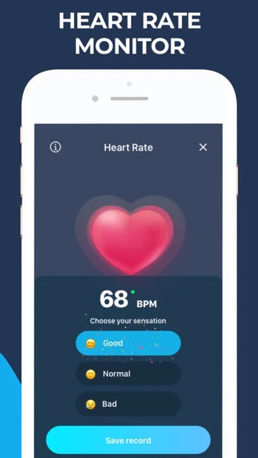 A new smart аpp which you can measure your average heart rate, monitor your health, and check the progress of your workouts. The application does not need any external additional devices for measuring the normal heart rate, as it is completely independent.