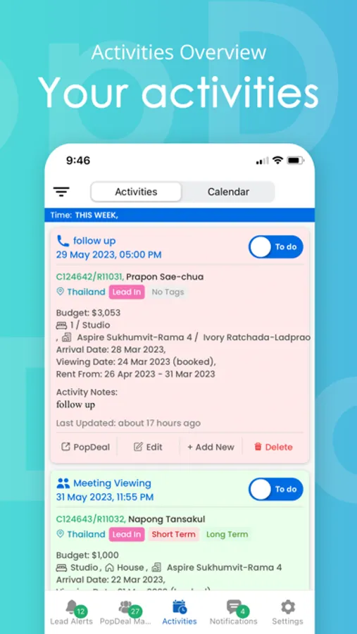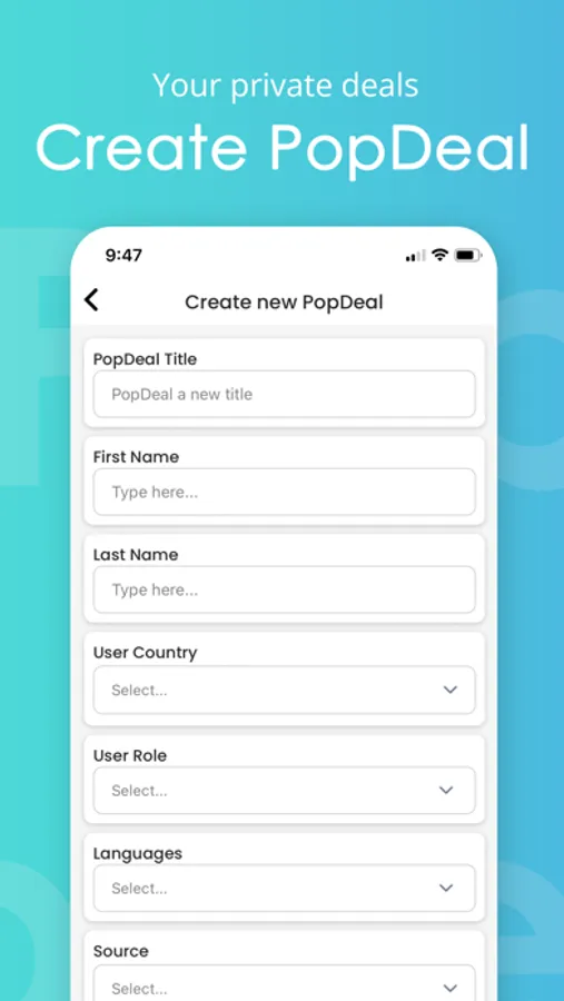 Receiving and managing Real Estate Clients has never been easier! PopDeal's revolutionary app allows agents to receive compatible new clients in one click. Lead generation, CRM system and performance tracking all in one easy-to-use app.